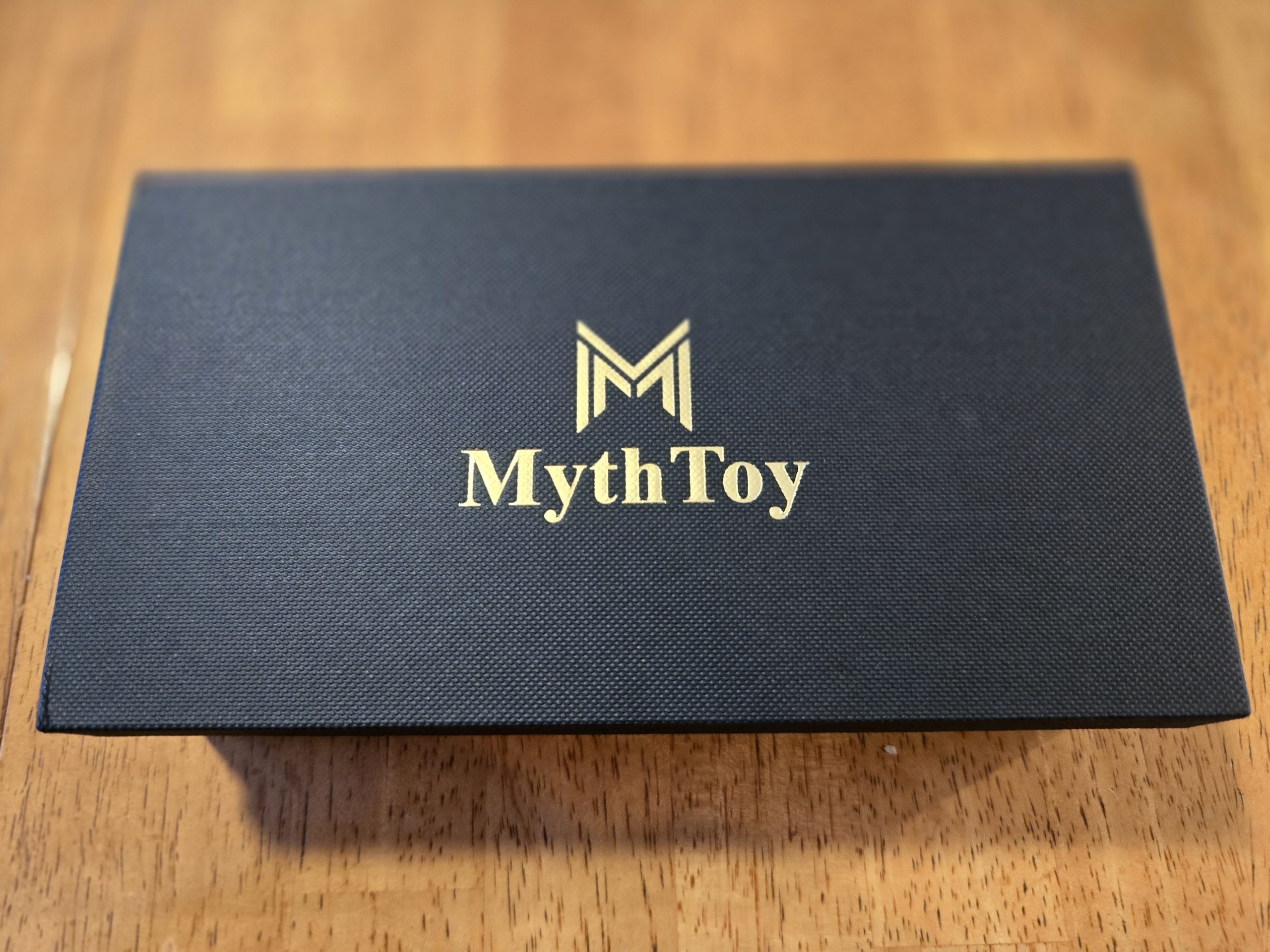 The MythToy Arc comes in a simple black box with gold lettered branding.