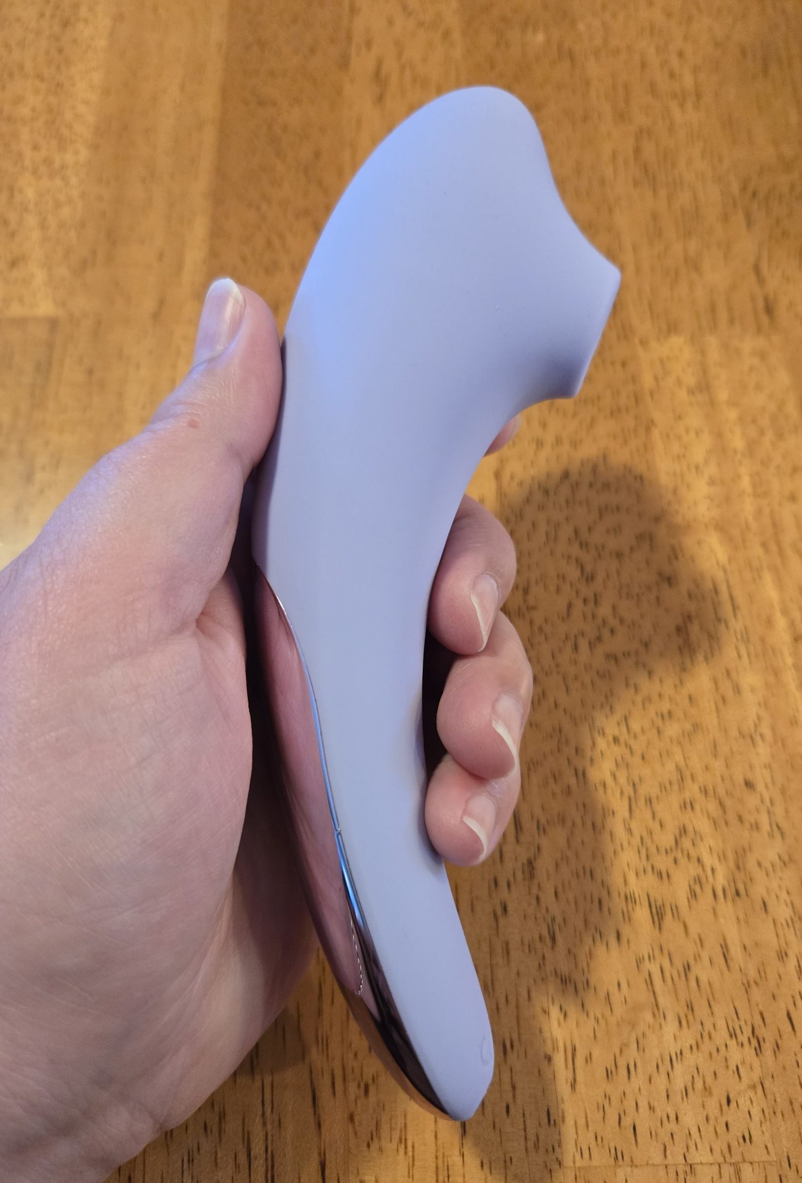 The Arc shares some design aesthetics with Lelo products, and that’s a compliment. The silicone is soft-touch and pleasant to handle. It has a rose gold accent plate. The toy is a lovely light lilac color rather than a more off-putting garish tone. Everything about it says elegance.